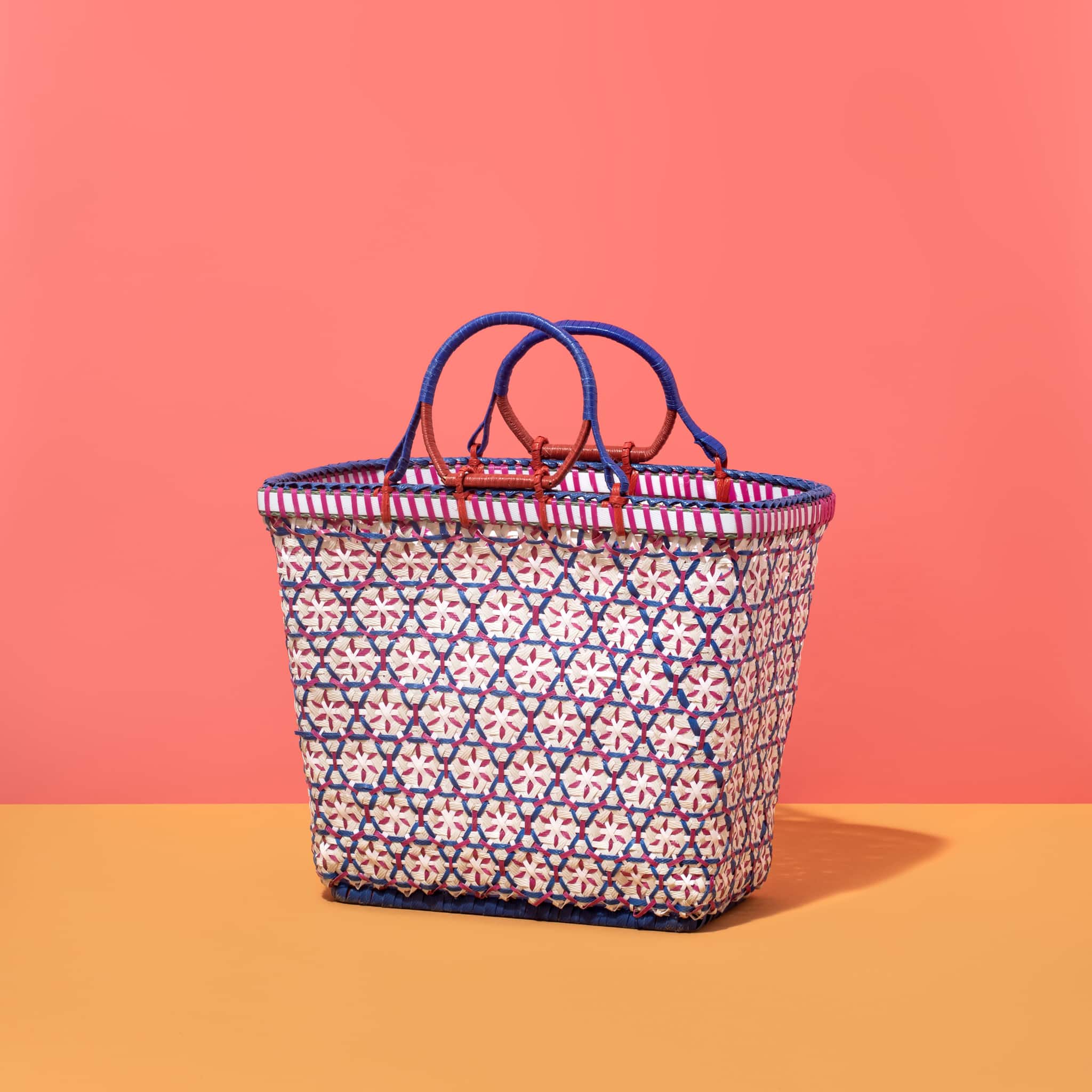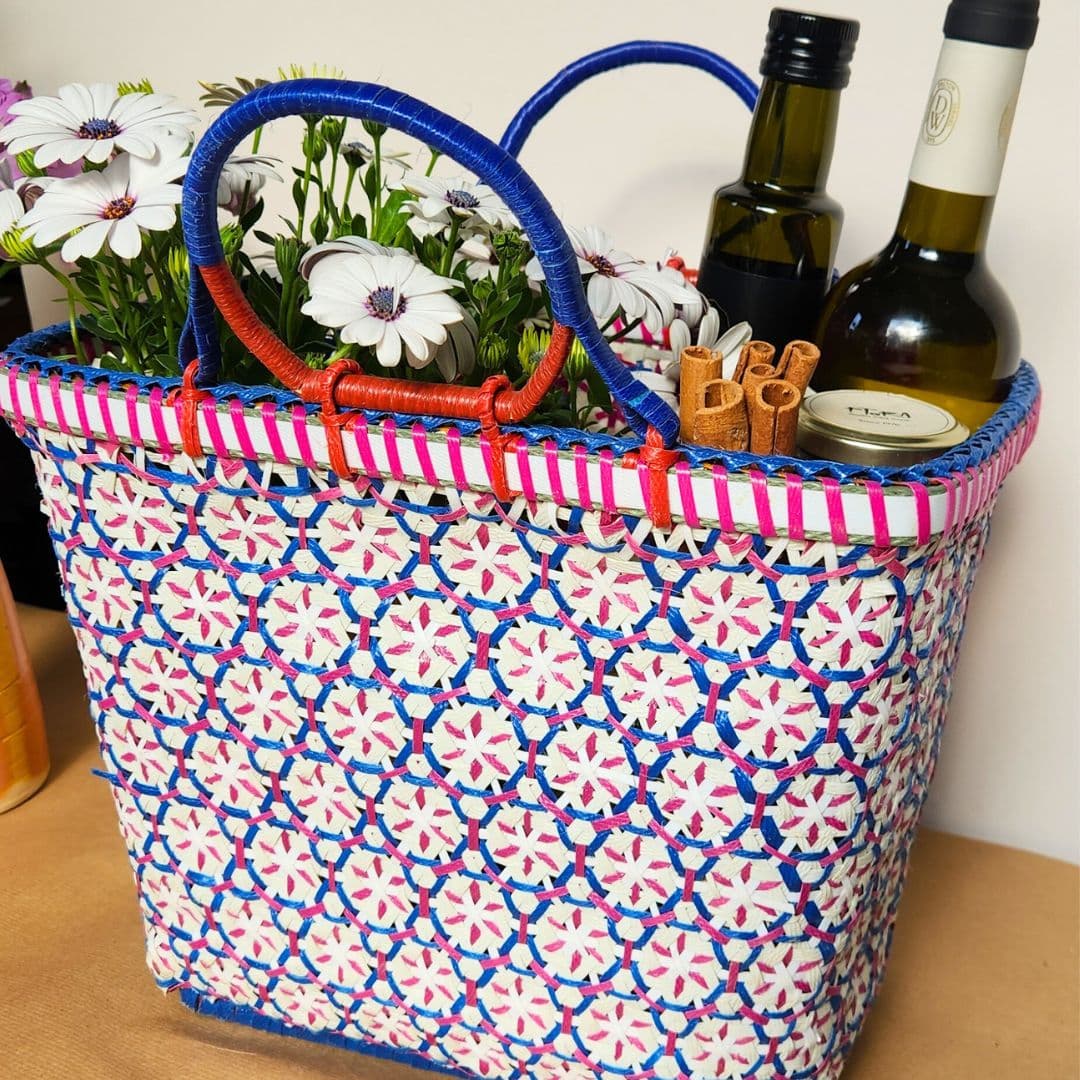• סלסלה גדולה מעוצבת באריגה יחודית וצבעונית